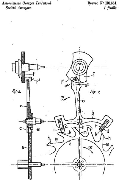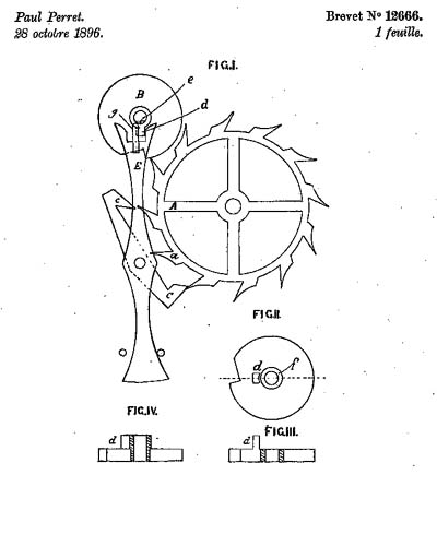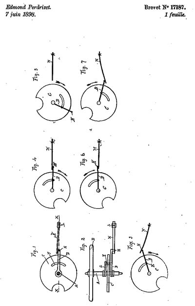 | Perdrizet- Hemmung | 7.6.1898 | Edmond Perdrizet | Patent CH17187; |