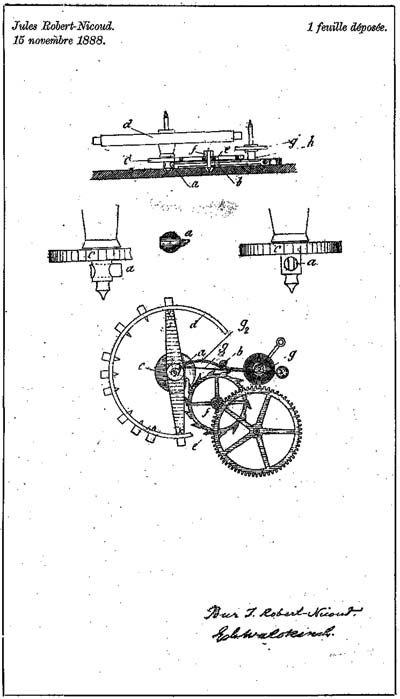 | Chronom.- Hemm. | 15.11.1888 | Jules Robert-Nicoud | Patent CH208; |