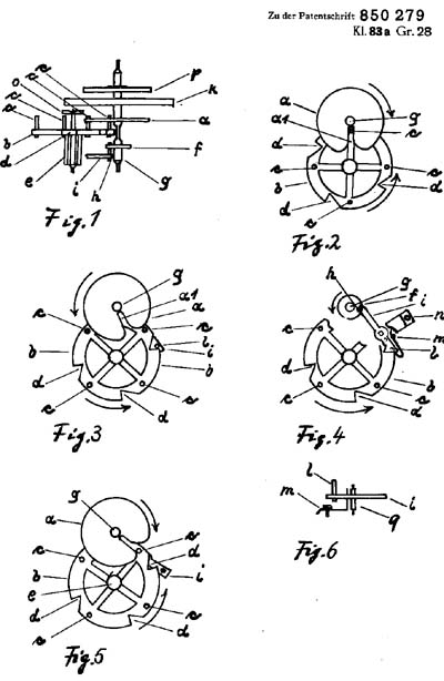 | Gleitscheiben- Hemmung | 11.10.1951 | Fritz Uebelacker | Patent DE850279; |