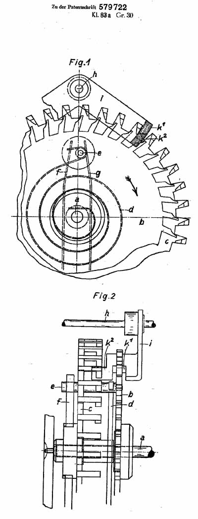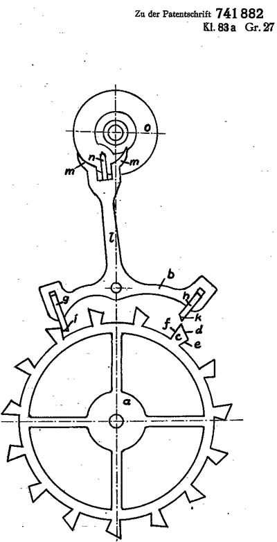| Ankerh. | 10.3.1932 | Junghans | Patent DE547261; ein Ankerstift, 2 Steigräder (eines innen u. eines aussenverzahnt) |