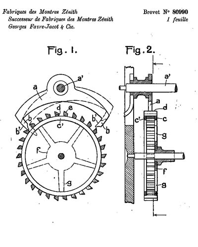 | Pendel | 12.12.1918 | Zenith | Patent CH80990; |