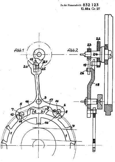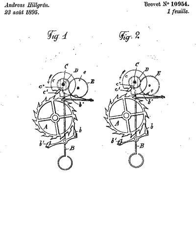 | Hillgrén- Hemmung | 23.8.1895 | Andreas Hillgrén | Patent CH10954; |