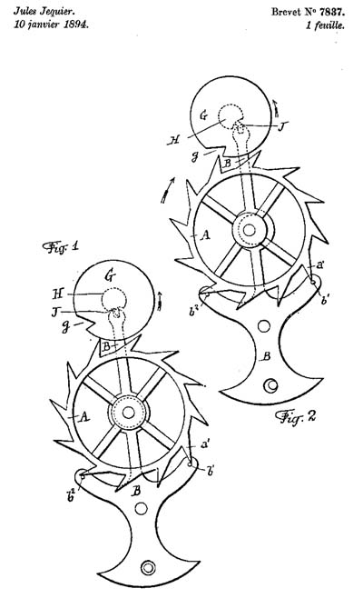 | Jequier- Hemmung | 10.1.1894 | Jules Jequier | Patent CH7837; |