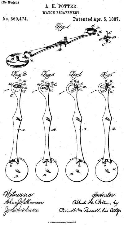 | Chronom.- Hemm. | 11.10.1875 | Albert Henry Potter (1836-1908) | Patent US168582; |