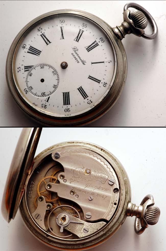 Von Juni 1878 - März 1889 war er zusammen mit Meylan, Ekegren und Jurgensen Mitglied der"Commission de Surveillance de l´Ecole d´Horlogerie". 1880 baute er die astronomische Uhr Nr. 486 mit Mondphase und ewigem Kalender. Potter beschäftigte sich hauptsächlich mit den Hemmungen und der endgültigen Fertigstellung seiner Uhren. Die Rohwerke bezog er von der Firma Rannaz Co. Einige seiner Patente verkaufte Potter an andere Manufakturen. Diese gelangten auf diesem Wege zur New Haven Watch Comp., welche ja in die Trenton Watch Company überging. Allerdings wurden diese Uhren nie gebaut. Somit konnte Potter die Rechte an die Manufaktur J.J. Badollet & Cie in Charmilles weitergeben. Daraus entstanden die "Charmilles"-Uhren. |